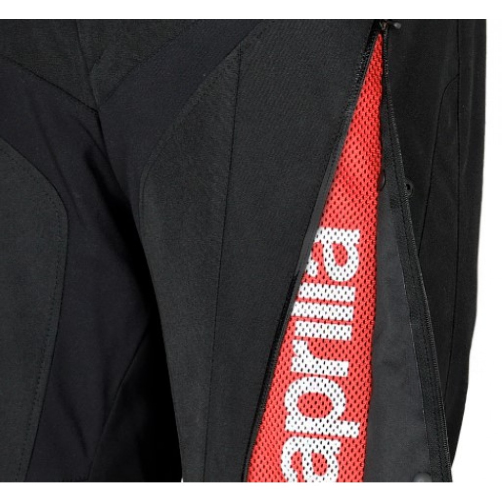 Adventure Touring παντελόνι με λογότυπα και λεπτομέρειες Aprilia. Από τεχνικό ύφασμα υψηλής πυκνότητας και αντοχής, εγγυώνται μέγιστη άνεση και εφαρμογή. Οι αεραγωγοί με ανοίγματα στα πλαϊνά σε συνδυασμό με την αδιάβροχη και αφαιρούμενη επένδυση επιτρέπουν τη χρήση του σε όλες τις καιρικές συνθήκες. Διαθέτει προστατευτικά γονάτου και ισχίου με πιστοποίηση CE 1621-1. Οι πολλές δυνατότητες ρύθμισης στα πλαϊνά και τις γάμπες καθώς και η δυνατότητα σύνδεσής του με το τζάκετ Adventure το καθιστούν ιδανικό για μεγάλα ταξίδια. Πιστοποίηση EN17092.