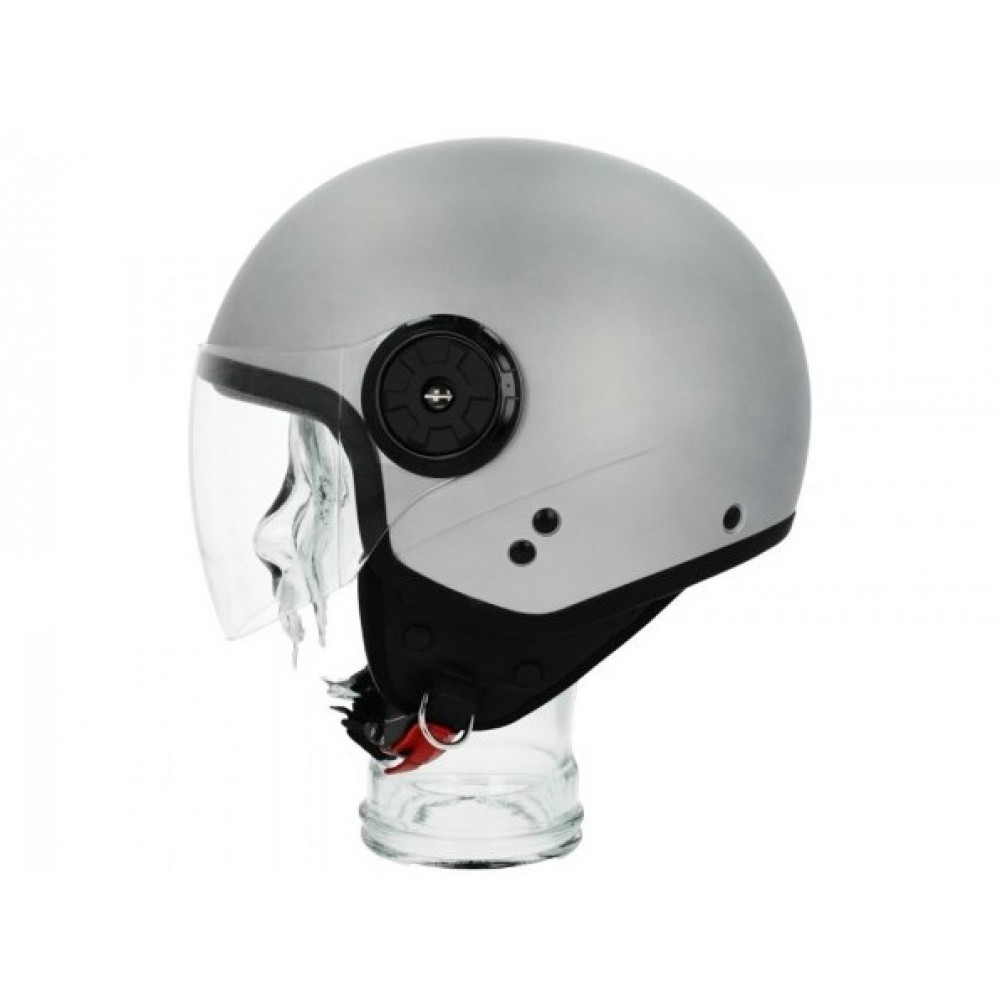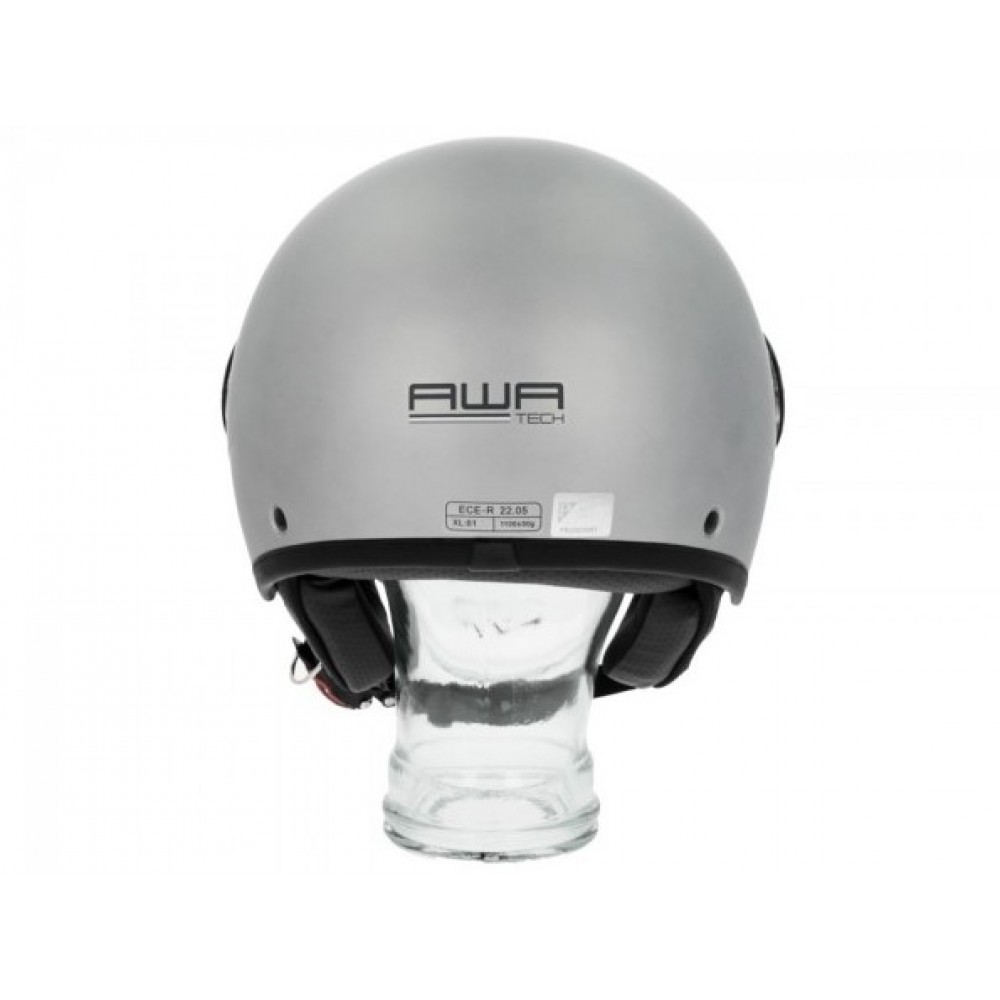 Κράνος demi jet, με το λογότυπο AWA στο πίσω μέρος του κελύφους και μηχανισμό ζελατίνας χωρίς λογότυπο.