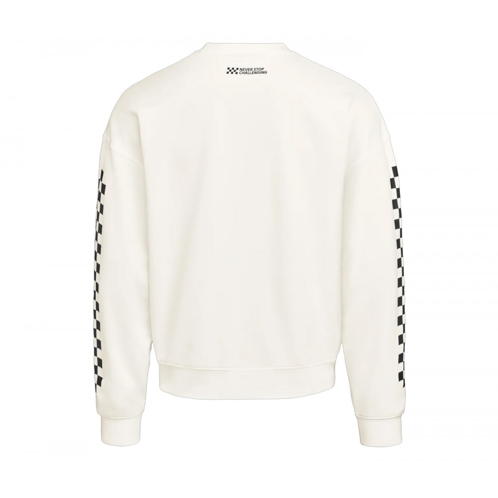 The sporty, loose-fit M Motorsport sweatshirt combines high-quality materials and a distinctive Race Team design for racing enthusiasts. With the large logos on the chest, the chequered flag design on both sleeves and “Never Stop Challenging” lettering on the neck, it makes a clear statement about your passion for motorsport.