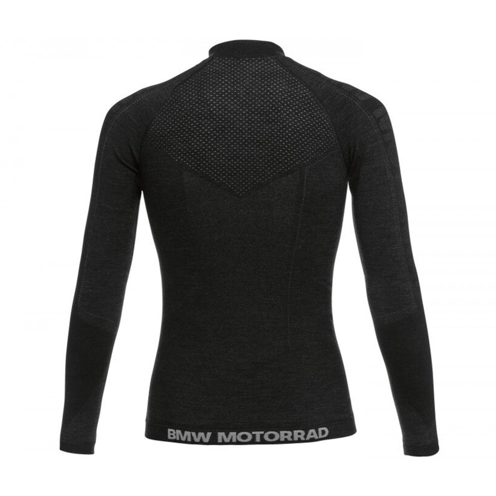 The long-sleeved functional all season top is the ideal first layer for motorcycling tours all year round. The high collar fits closely on the neck and the merino wool mix of materials pay off especially on cold days. When temperatures rise, the pointelle pattern ensures optimum climate comfort. Visual highlight: the BMW Motorrad inscriptions.