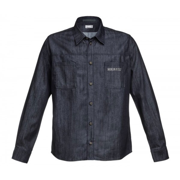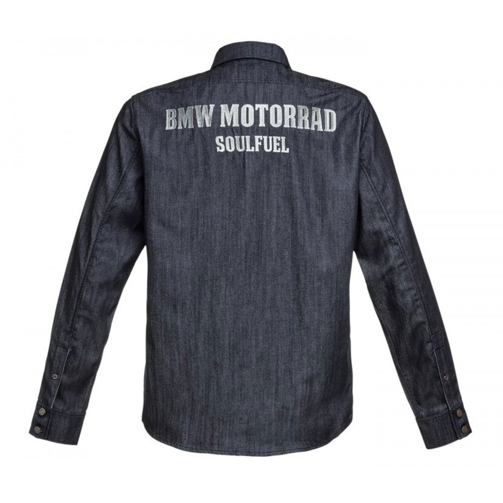 Classic denim shirt with two breast pockets and button-down collar and large “BMW Motorrad Soulfuel” inscription on the back.