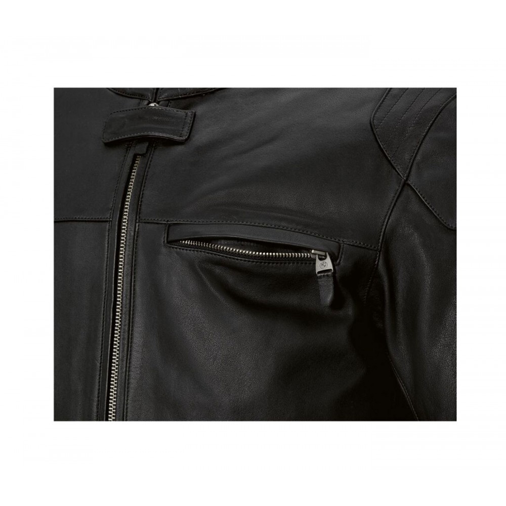 Το μπουφάν Schwabing με εμφάνιση Heritage αναβιώνει ένα κλασικό σχέδιο με νέα σχεδίαση. Οι παραδοσιακές λωρίδες Twin Stripes στα μανίκια αποτελούν περαιτέρω εντυπωσιακά διακοσμητικά στοιχεία. Κάτω από το δέρμα βοοειδών υψηλής ποιότητας, τα προστατευτικά NP Flex σε ώμους και αγκώνες φροντίζουν για ασφάλεια, ενώ δύο εξωτερικές τσέπες και τρεις εσωτερικές τσέπες προσφέρουν αποθηκευτικό χώρο.