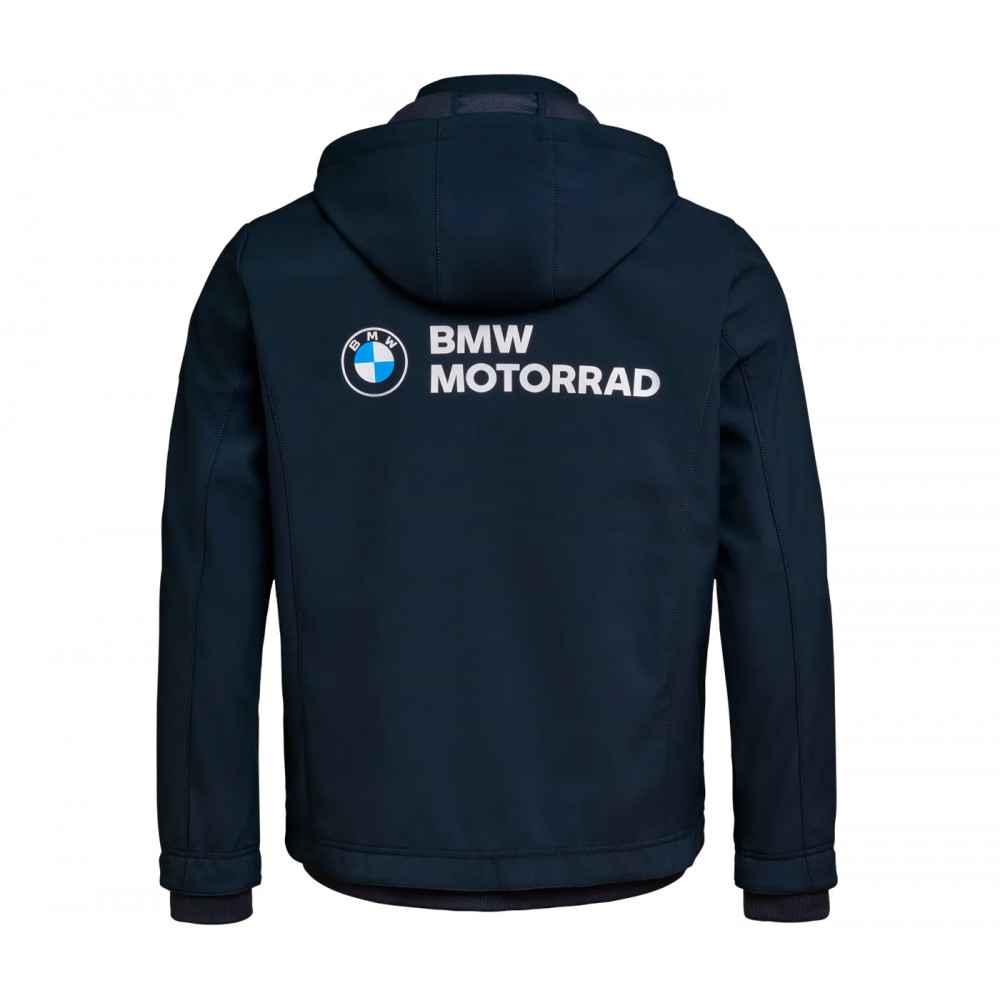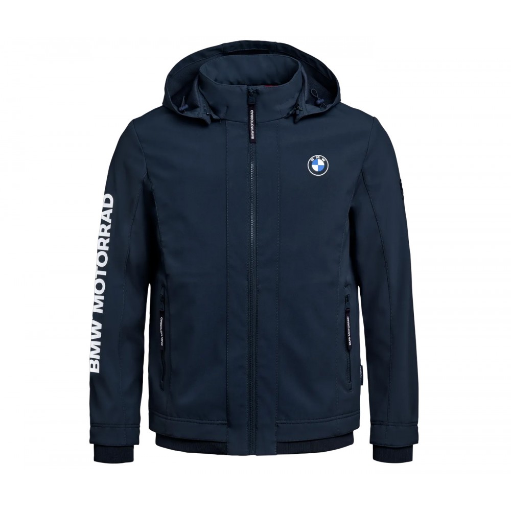 Weather protection can be so stylish. The windproof and waterproof softshell jacket looks good everywhere and fits comfortably under a motorcycle suit. The three-layer, navy blue softshell material is breathable, reliably protects against rain and wind with a water column of 5000 mm and brings out the BMW Motorrad design accents.