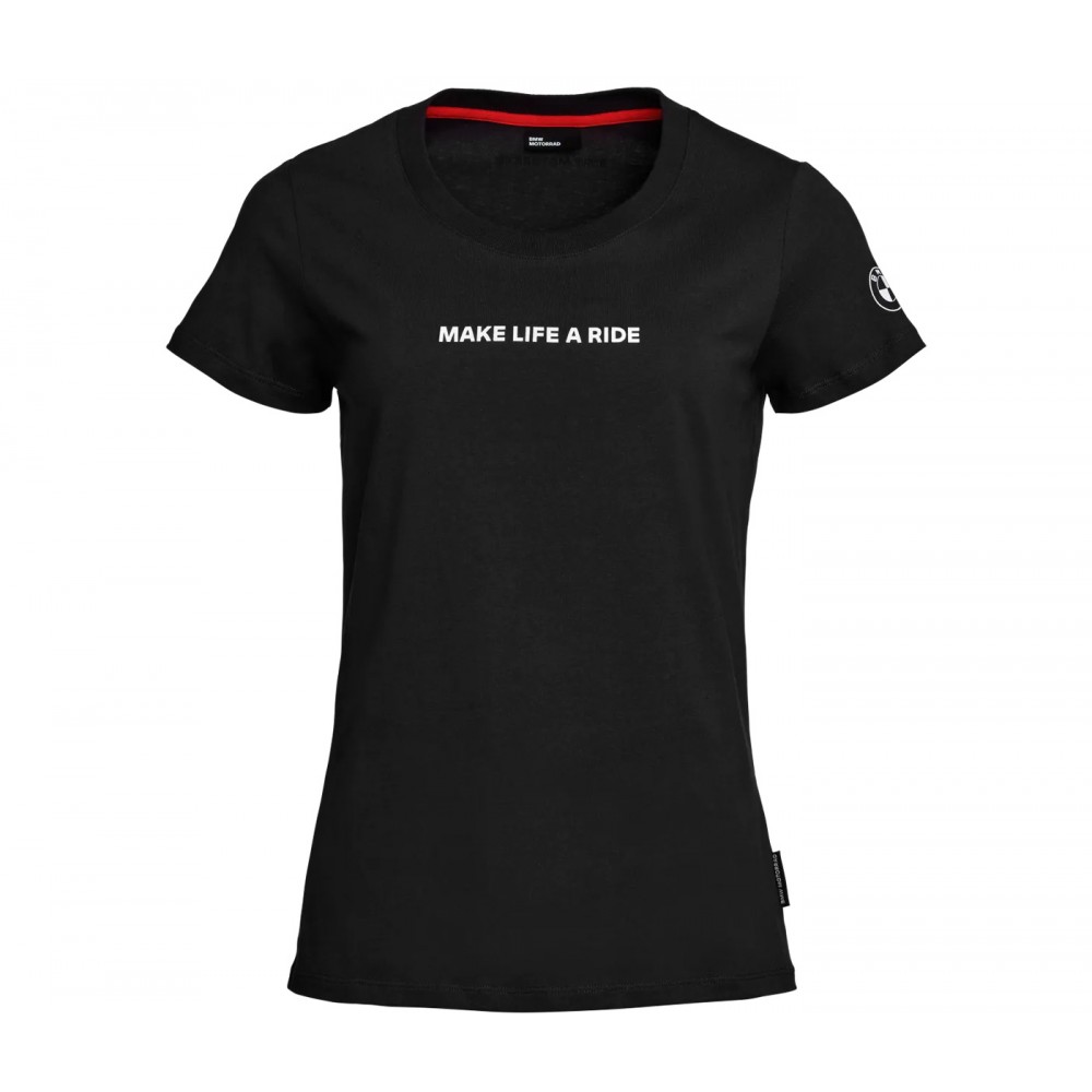 The white Make Life a Ride T-shirt is a classic that has a regular place in the wardrobes of female fans of BMW Motorrad. As a subtle print, the distinctive cult slogan adorns the middle of the chest of the stylish shirt, which is particularly comfortable to wear thanks to its high-quality single-jersey fabric made from 100% organic cotton.