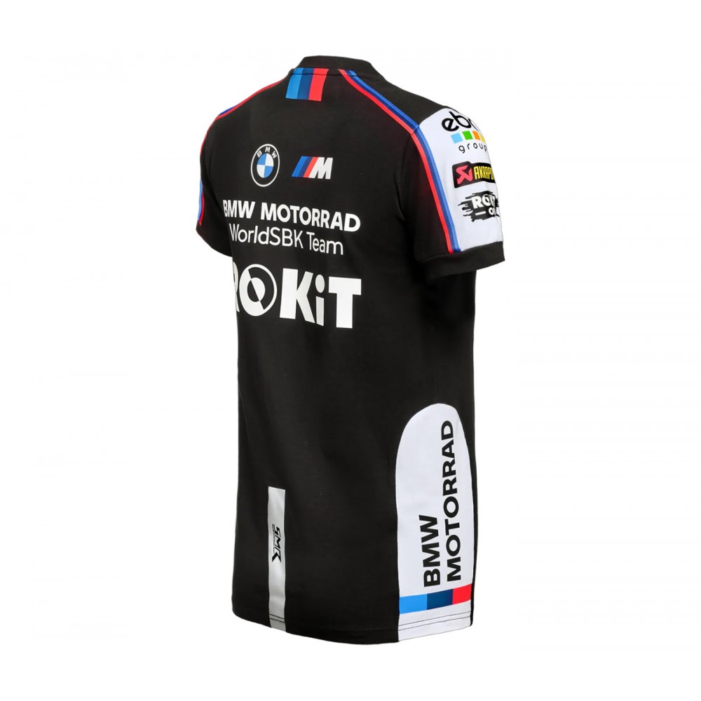 The ROKiT BMW Motorrad WorldSBK team shirt is for everyone who cheers on our races and is part of the team at heart. With a sporty cut, in classic BMW M colours and with numerous authentic sponsor prints.