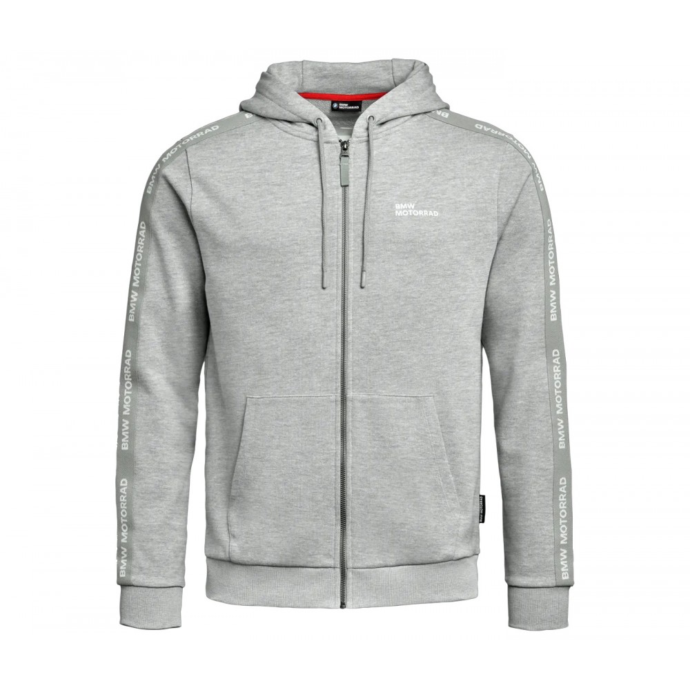 Casual comfort for BMW Motorrad fans. The BMW Motorrad zip hoodie combines a comfortable fit with a stylish BMW-look design. The high-quality French terry fabric made from unbrushed organic cotton is particularly pleasant on the skin. The BMW Motorrad graphics and lettering show the connection with the brand in a stylish way.