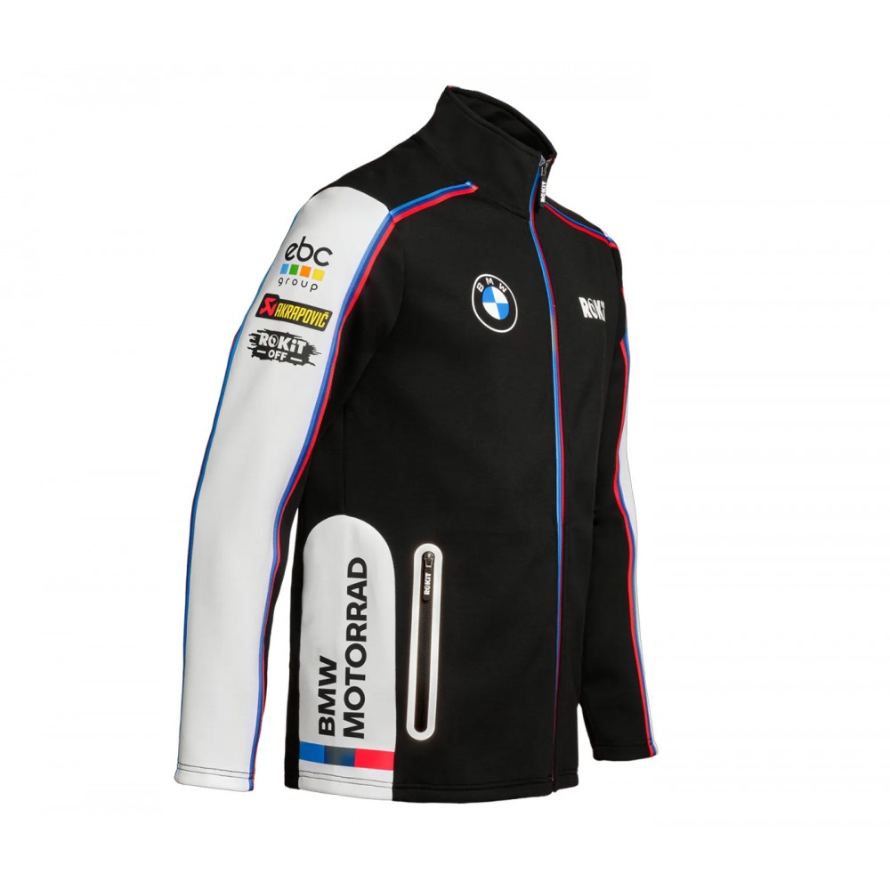 This sporty zip sweatshirt is the ideal companion on all racetracks, from Estoril to Jerez to Donington Park. The classic BMW M colours and numerous authentic sponsor prints also convey real team spirit — for all fans of the ROKiT BMW Motorrad WorldSBK team.