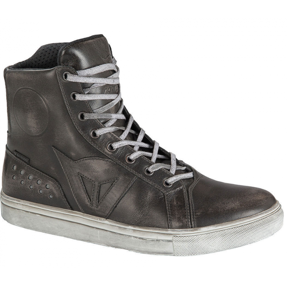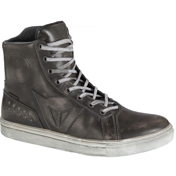 Αντρικά δερμάτινα αδιάβροχα χειμερινά μποτάκια μηχανής Dainese Street Rocker D-WP. Σε μαύρο destroyed χρώμα. Οι μπότες αυτές διαθέτουν τις απαραίτιτες προστασίες για χρήση μηχανής ή scooter αλλά μπορούν να φορεθούν και ως απλές καθημερινά. Είναι άνετες στο περπάτημα λόγω της εργονομικής σχεδίασης τους. Οι προστασίες τους παίρνουν την ευρωπαϊκή πιστοποίηση CE και μάλιστα την αυστηρότερη Category II.