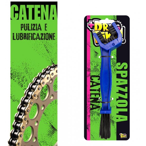 Διπλή βούρτσα ιδανική για τον καθαρισμό αλυσίδων μοτοσυκλετών οποιουδήποτε μεγέθους.