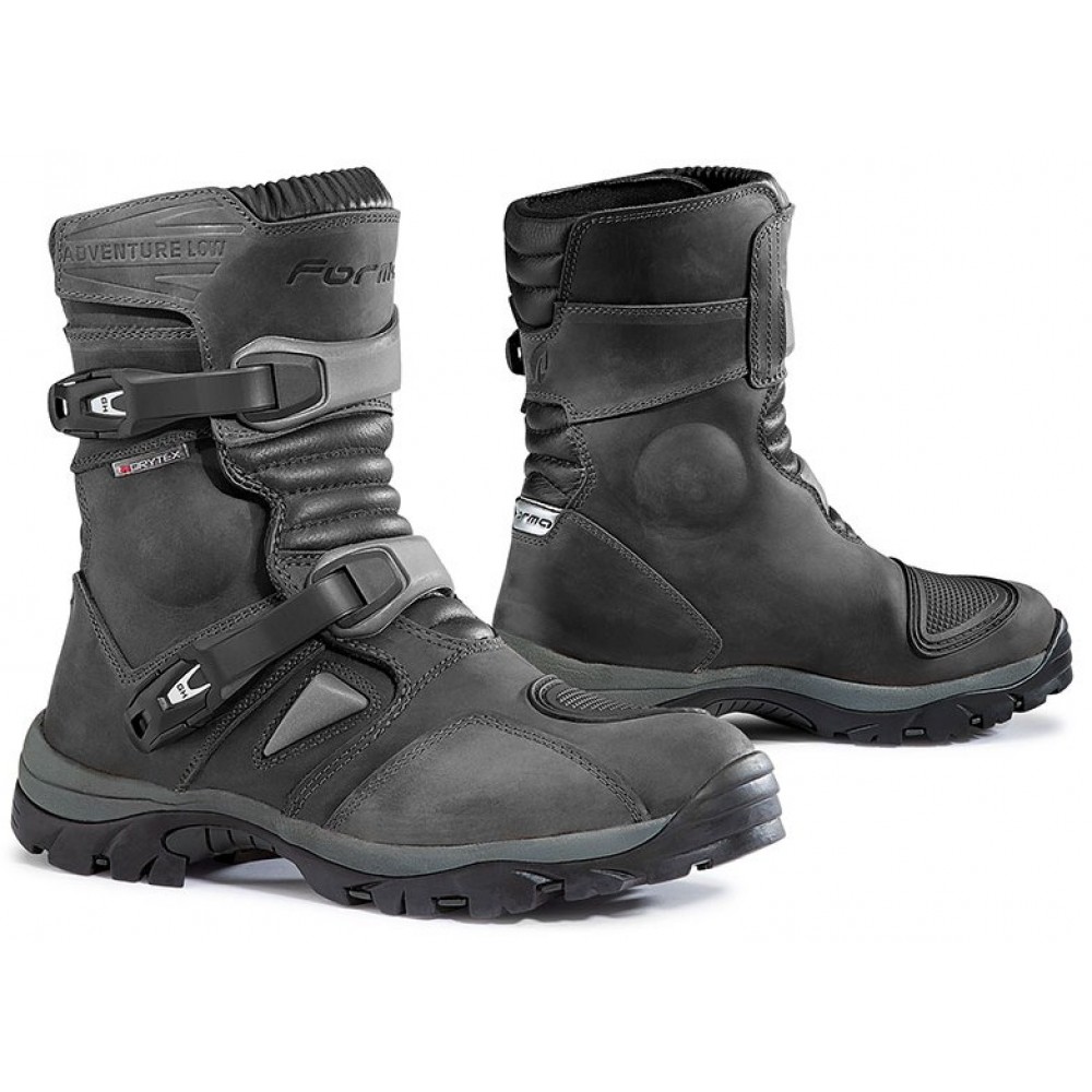 Κοντές μπότες enduro /adventure / atv / quad της FORMA, από γνήσιο δέρμα ειδικής επεξεργασίας. Διαθέτουν ελαστική, αντιολησθητική, adventure/enduro/ atv-quad σόλα, μεμβράνη DRYTEX, που παρέχει 100% προστασία από το νερό ενώ παράλληλα επιτρέπει τη διαπνοή, προστασίες TPU στον αστράγαλο και την κνήμη, εξαιρετικά μαλακή εσωτερική επένδυση memory foam, προστασία λεβιέ ταχυτήτων, σύστημα κλεισίματος με δύο πόρπες ασφαλείας και Velcro, anti-shock EVA ενδιάμεση σόλα και προσθαφαιρούμενους αντιβακτηριδιακούς πάτους με σύστημα APS (Air Pump System).