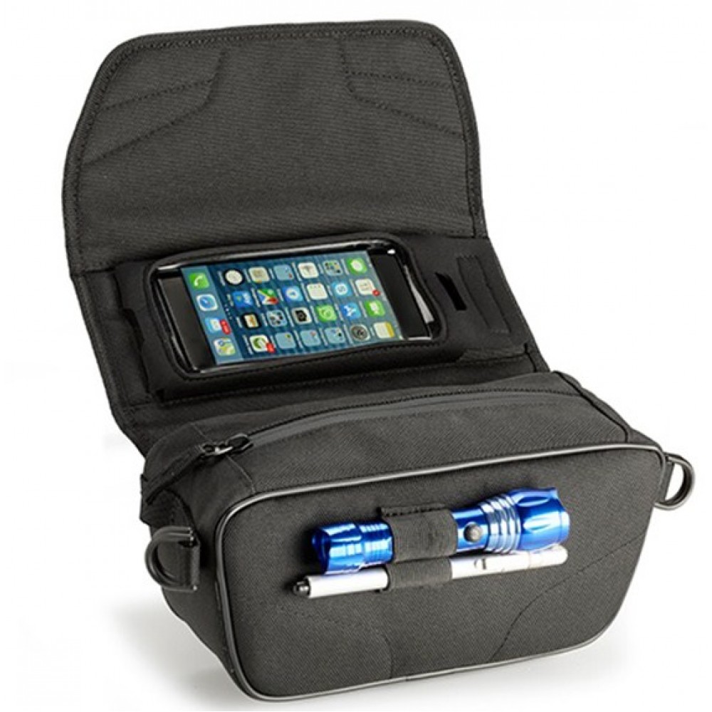 Universal τσάντα τιμονιού κατασκευασμένη από πολυεστέρα 1200D W / R υψηλής αντοχής, με εσωτερική θήκη για smartphone.