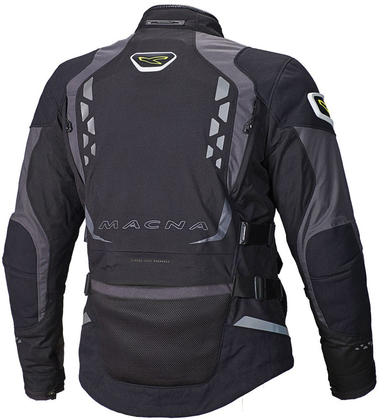 Αδιάβροχο μπουφάν 4 εποχών από τη MACNA, κατασκευασμένο από Poly 500 και R-tech, υλικά υψηλής ποιότητας και αντοχής. Διαθέτει αφαιρούμενη Raintex αδιάβροχη μεμβράνη, προστασίες CE σε ώμους και τους αγκώνες, αεραγωγούς στο στήθος, ανακλαστικές περιοχές για ασφαλέστερη νυχτερινή οδήγηση, φερμουάρ σύνδεσης με το παντελόνι και ιμάντες για καλύτερη προσαρμογή. Mπορεί να δεχθεί το Vision vest της MACNA, ένα γιλέκο σε έντονο κίτρινο χρώμα με μεγάλες ανακλαστικές περιοχές, για ακόμα καλύτερη ορατότητα μέρα – νύχτα.
