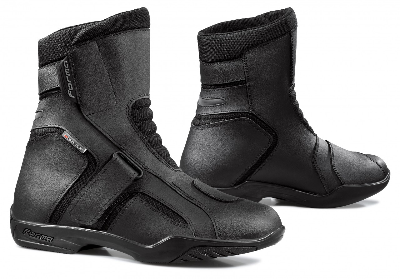 Αδιάβροχο μποτάκι από συνθετικό δέρμα και Cordura®, με μεμβράνη DRYTEX, υλικό που παρέχει 100% προστασία από το νερό ενώ παράλληλα επιτρέπει την αναπνοή του ποδιού. Διαθέτει ΤPU προστασία στον αστράγαλο, προστασία λεβιέ ταχυτήτων, ενισχυμένο κολάρο για μεγαλύτερη άνεση, ρυθμιζόμενο κλείσιμο με διπλό velcro, αντιολισθητική EVA ενδιάμεση σόλα TPU Dual Flex, προσθαφαιρούμενους αντιβακτηριδιακούς πάτους με σύστημα APS (Air Pump System) και ανακλαστικά ένθετα πίσω.