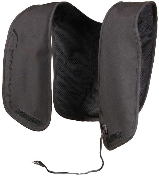 Θερμαινόμενο γιλέκο της Macna για πολύ χαμηλές θερμοκρασίες. Τοποθετήστε την μπαταρία στην ειδικά σχεδιασμένη θέση, στην επένδυση του μπουφάν σας, και επιλέξτε την κατάλληλη θερμοκρασία. Μια πλήρως φορτισμένη μπαταρία παρέχει έως και 3 ώρες θερμότητας.