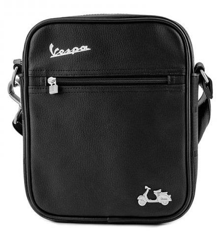 Από οικολογικό δέρμα με εσωτερικές θήκες και αποσπώμενο/ρυθμιζόμενο λουράκι. Επένδυση με λάστιχο στο πλάι που θυμίζει τις χειρολαβές Vespa. Διαστάσεις 18x23x5,5cm.