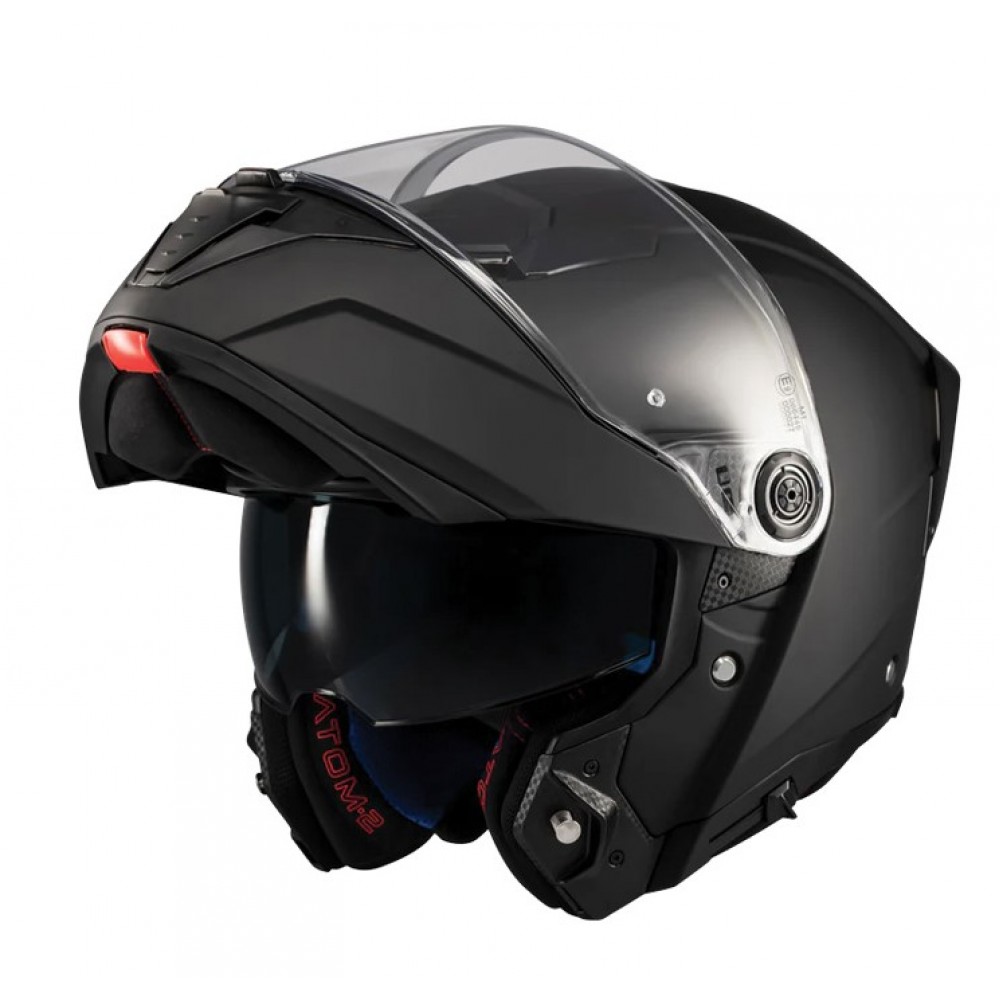 Το MT Atom 2 SV είναι ένα flip-up κράνος με αεροδυναμική σχεδίαση, ιδανικό για περιηγήσεις. Κατασκευασμένο από HIRP, ένα πολύ ανθεκτικό υλικό, διαθέτει μεγάλη αντιχαρακτική ζελατίνα που προσφέρει ευρύ οπτικό πεδίο, συμβατή με Pinlock® (δεν περιλαμβάνεται), εσωτερική φυμέ ζελατίνα που εγγυάται σωστή προστασία από τις ακτίνες UV και σύστημα εξαερισμού με τεχνολογία MT-AFCS που εγγυάται σωστή ροή αέρα.