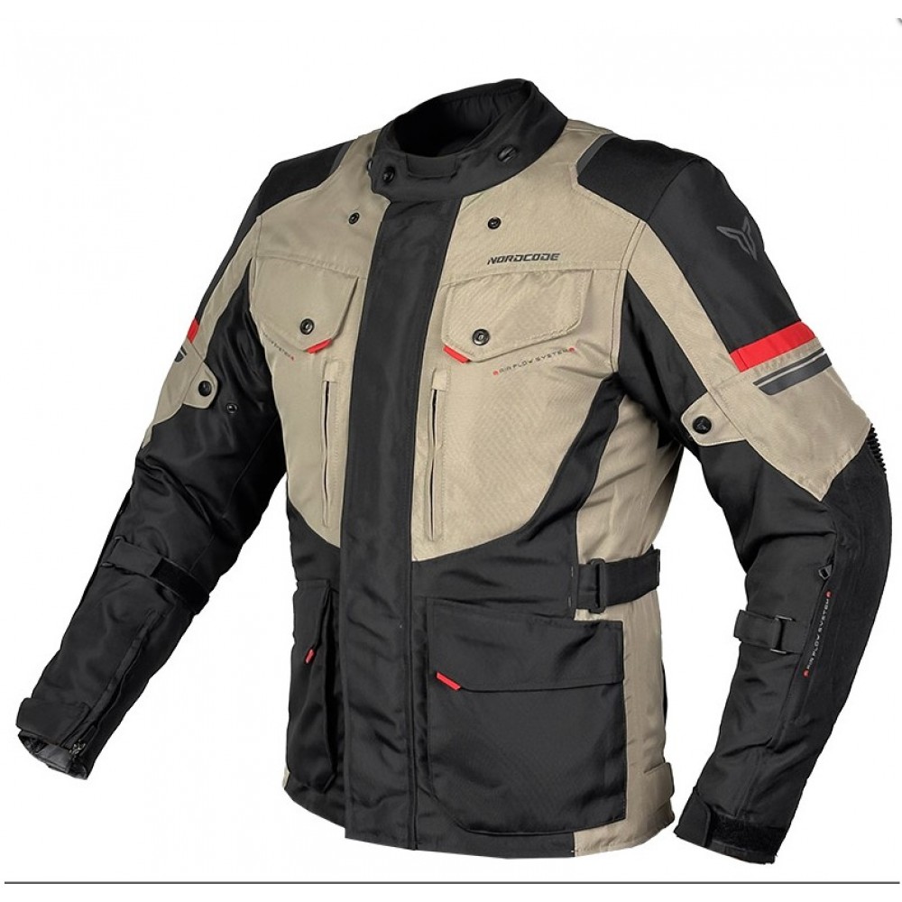 Το Nordcode Dust είναι ένα αδιάβροχο χειμερινό μπουφάν μοτοσικλέτας με αφαιρούμερη θερμική επένδυση. Το εξωτερικό στρώμα του μπουφάν είναι κατασκευασμένο από ύφασμα με εξαιρετική αντοχή στην τριβή. Οι αεραγωγοί με Velcro και κουμπί στο μπροστινό μέρος προσφέρουν σημαντική ροή αέρα όταν χρειάζεται. Διαθέτει ρυθμιζόμενους ιμάντες για να εξασφαλίσει τέλεια εφαρμογή. Η ασφάλεια παρέχεται από τα αποσπώμενα προστατευτικά CE1621-1 στους ώμους και τους αγκώνες και ένα αφαιρούμενο προστατευτικό πλάτης.