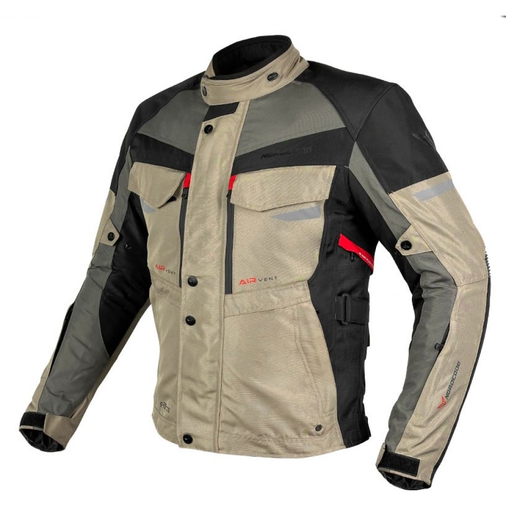 Το Nordcode Force είναι ένα αδιάβροχο χειμερινό μπουφάν μοτοσικλέτας με αφαιρούμερη θερμική επένδυση. Το εξωτερικό στρώμα του μπουφάν είναι κατασκευασμένο από ύφασμα stretch polyester, με εξαιρετική αντοχή στην τριβή, και τμήματα ripstop σε ώμους και πλευρά. Οι αεραγωγοί με Velcro και κουμπί στο μπροστινό μέρος προσφέρουν σημαντική ροή αέρα όταν χρειάζεται. Διαθέτει ρυθμιζόμενους ιμάντες για να εξασφαλίσει τέλεια εφαρμογή. Η ασφάλεια παρέχεται από τα αποσπώμενα προστατευτικά CE1621-1 στους ώμους και τους αγκώνες και ένα αφαιρούμενο προστατευτικό πλάτης.