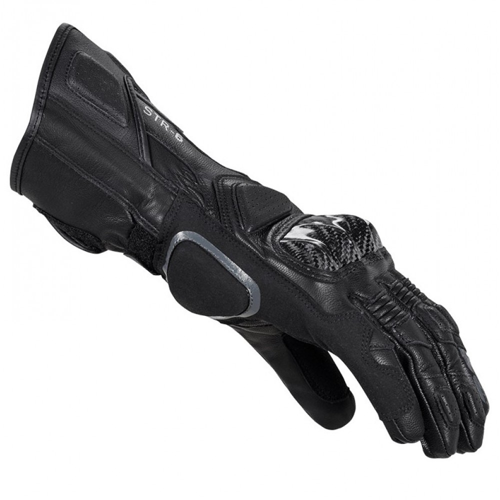 Το Spidi Str-6 αντιπροσωπεύει την καλύτερη ισορροπία μεταξύ αγωνιστικής απόδοσης και άνεσης. Οι αρθρώσεις από ανθρακονήματα με εσωτερική ενίσχυση διπλής πυκνότητας εγγυώνται υψηλά επίπεδα απορρόφησης κραδασμών και αντοχής στην τριβή, ενώ τα δερμάτινα ένθετα πολλαπλών στρώσεων στην παλάμη είναι στρατηγικά τοποθετημένα στις πιο κρίσιμες περιοχές. Το διπλό κλείσιμο Velcro προσφέρει στους αναβάτες ένα ευρύ φάσμα προσαρμογών. Τα γάντια Str-6 είναι πιστοποιημένα κατά EN13594:2015 KP.