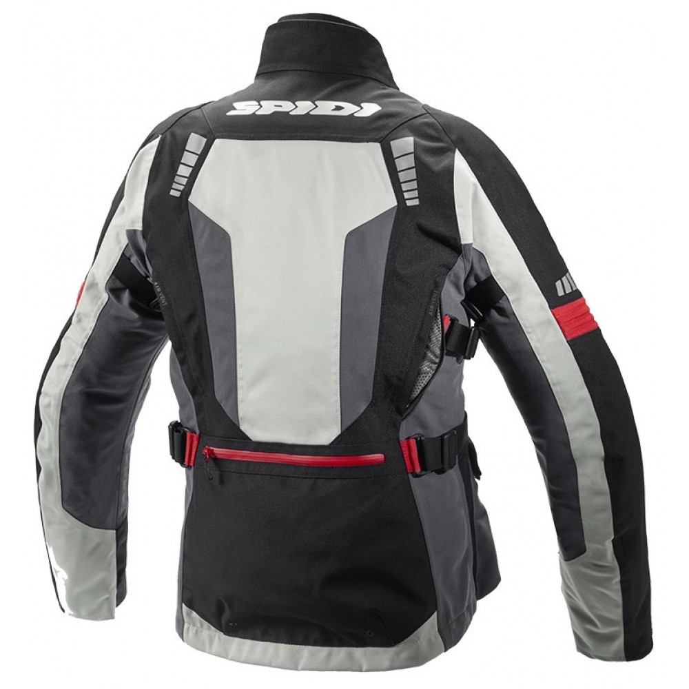 Το Spidi Outlander H2Out αναπτύχθηκε με στόχο τη δημιουργία ενός laminated μπουφάν ιδανικό τόσο για χειμερινά, όσο και καλοκαιρινά κλίματα. Για την επίτευξη του στόχου χρησιμοποιήθηκε ένα καινοτόμο σύστημα εισαγωγής αέρα χωρίς ραφή τοποθετημένο στο στήθος με εξαιρετική απόδοση όσον αφορά την αδιαβροχοποίηση και τον αερισμό.
