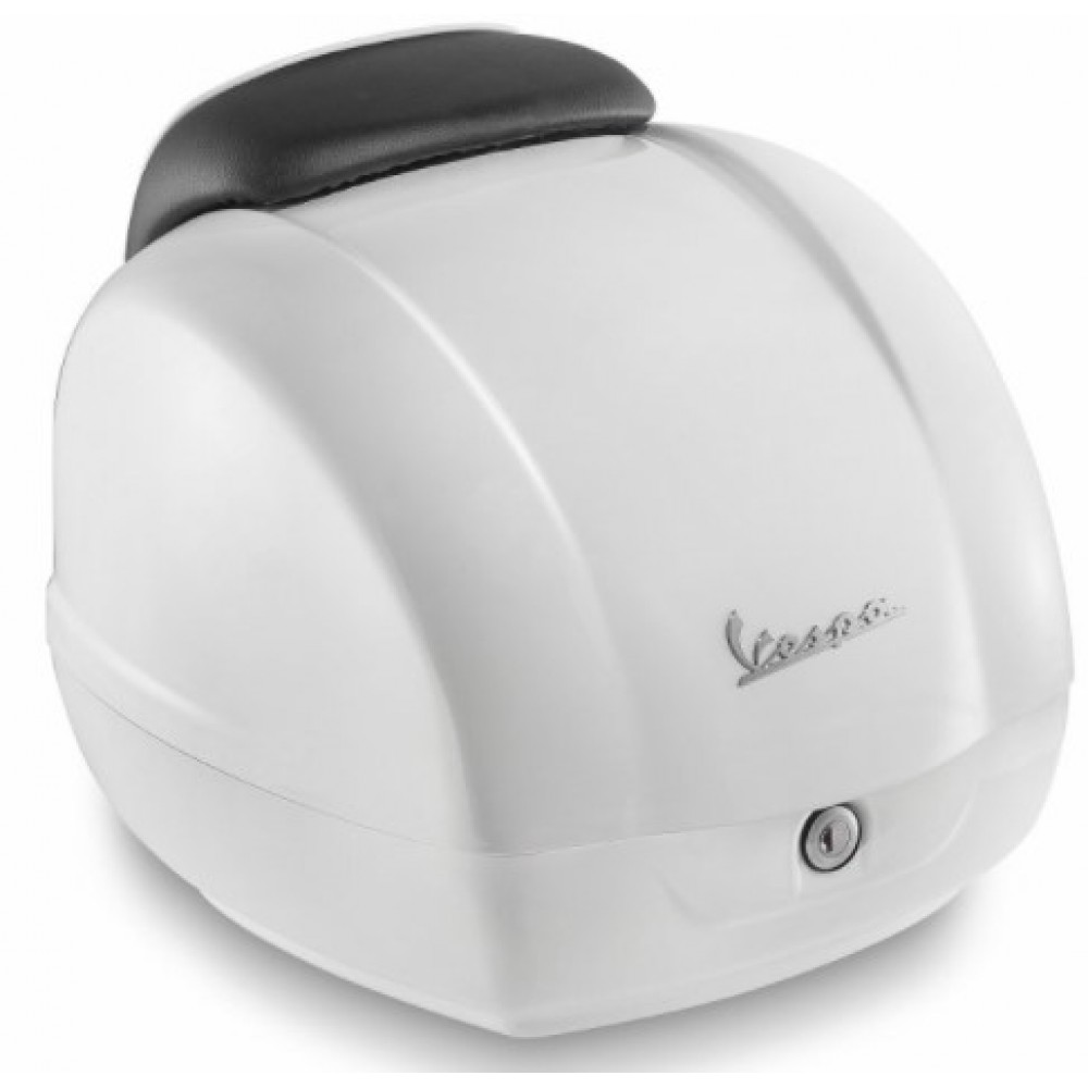 Βαμμένη κορυφαία θήκη, με κάλυμμα πλάτης που καλύπτεται με το ίδιο υλικό και τελειώνει με τη σέλα. Φρέσκο, μοντέρνο σχεδιασμό που συμπληρώνει τις απαλές, ρέουσες φόρμες της Vespa. Μπορεί να κρατήσει ένα κράνος full face ή δύο κράνη τζετ. Στηρίγματα πλάτης, κιτ στερέωσης, μικρά βάρη τερματικού και βαρούλκου. Η σχαρα δεν περιλαμβάνεται.Πλάτη βαλίτσας CM273230 περιλαμβάνεται στον κωδικό.