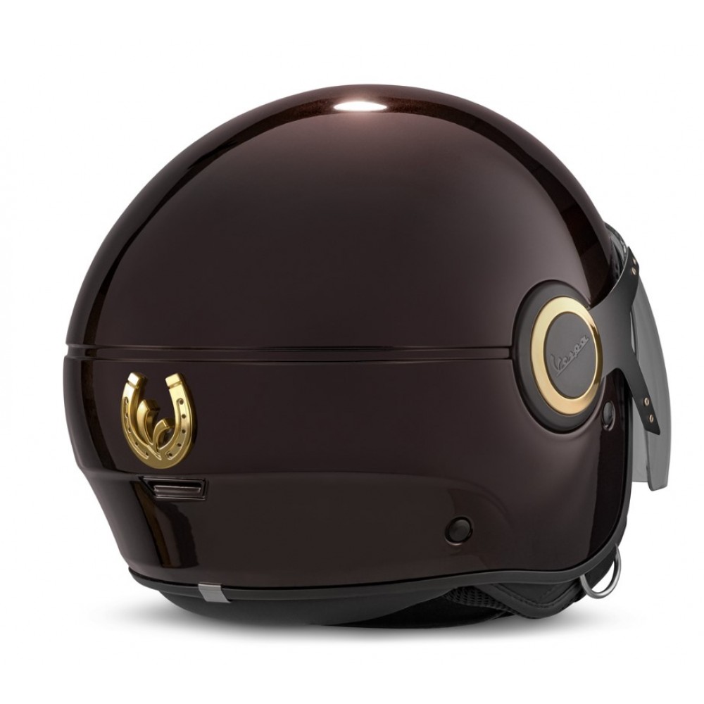 Vespa 946 HORSE HELMETS είναι το νέο αποκλειστικό κράνος Jet από υλικό ABS με ματ καφέ άκρη και το ίδιο χρώμα και φινίρισμα του οχήματος. Διαφανής κύρια ζελατίνα με αντιχαρακτική επεξεργασία και εσωτερικό σκίαστρο, μικρομετρικό σύστημα συγκράτησης με αντικλεπτικό δακτύλιο. Το νέο σύστημα εξαερισμού βοηθά στην γρήγορη απαγωγή της θερμότητας, στην επιτάχυνση της απομάκρυνσης του ιδρώτα, διατηρώντας έτσι το εσωτερικό ύφασμα δροσερό και άνετο για μεγάλο χρονικό διάστημα. Νέο εσωτερικό αναπνεύσιμο, εύκολο στην ξήρανση και δροσερό ύφασμα. Vespa Horse logo 3D στην πλάτη. Πλενόμενα και αφαιρούμενα μαξιλαράκια μάγουλων και εσωτερική επένδυση. Βάσεις ζελατίνας από αλουμίνιο ματ καφέ.
