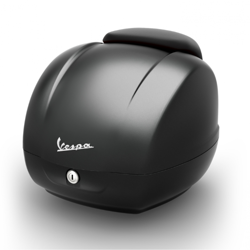 Βαλιτσάκι στο χρώμα του οχήματος, με χρωμιομένο λογότυπο Vespa, χωρητικότητας ενός ανοιγόμενου κράνο..